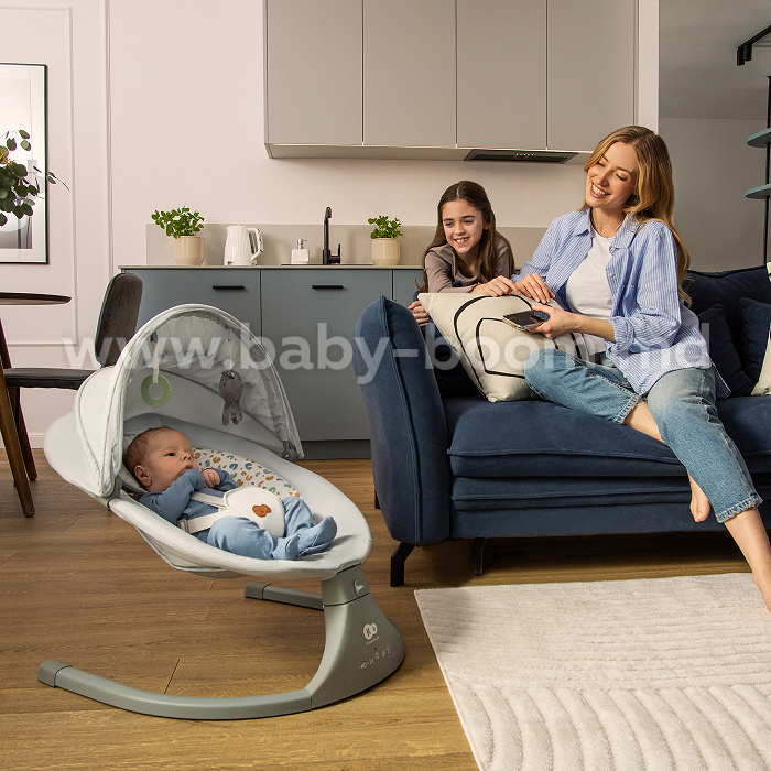 Kinderkraft Lumi - este un leagăn electric care iese în evidență din alte produse nu numai pentru designul său frumos modern, ci și pentru mecanismul său de leagăn. Lumi are un mecanism de balansare transversal, mai degrabă decât o mișcare longitudinală (față-înapoi) - această mișcare urmează mișcarea naturală a bebelușului în abdomenul mamei. Balansoarul are, de asemenea, o tehnologie modernă și simplă de control de pe panou. Acest balansoar face mult mai ușor să-ți calmezi copilul sau să-l adormi. Lumi are un control al vitezei de oscilare în 5 pași și un temporizator care poate fi setat timp de 8, 15 și 30 de minute (dacă temporizatorul este oprit, balansoarul funcționează non-stop). În plus, panoul de control are 12 melodii încorporate compatibile cu sunetul. Siguranța bebelușului este asigurată de hamuri cu 5 puncte reglabile (2 înălțimi). Balansoarul este confecționat din materiale moi și moi, care oferă copilului confort și comoditate. Setul include, de asemenea, o pernă moale, reglabilă și un arc cu 2 jucării.