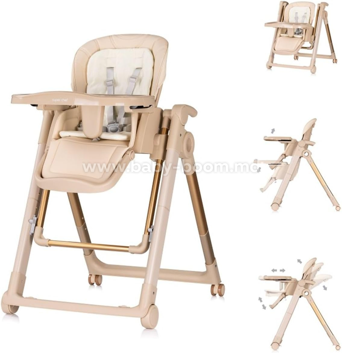 Chipolino Super Chef este alegerea perfectă pentru părinții care caută un scaun înalt versatil și confortabil pentru hrănire de la naștere. Combinația dintre un leagăn și un scaun înalt îl face o soluție practică pentru viața de zi cu zi, combinând confortul, siguranța și ușurința în îngrijire.