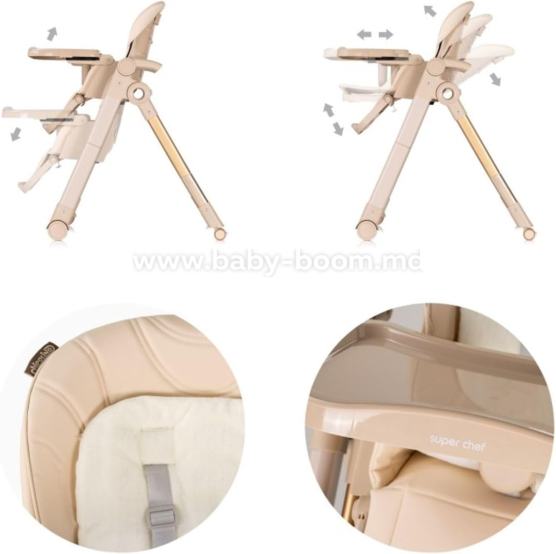 - 3 poziții de adâncime a tăvii - în funcție de înălțimea copilului;