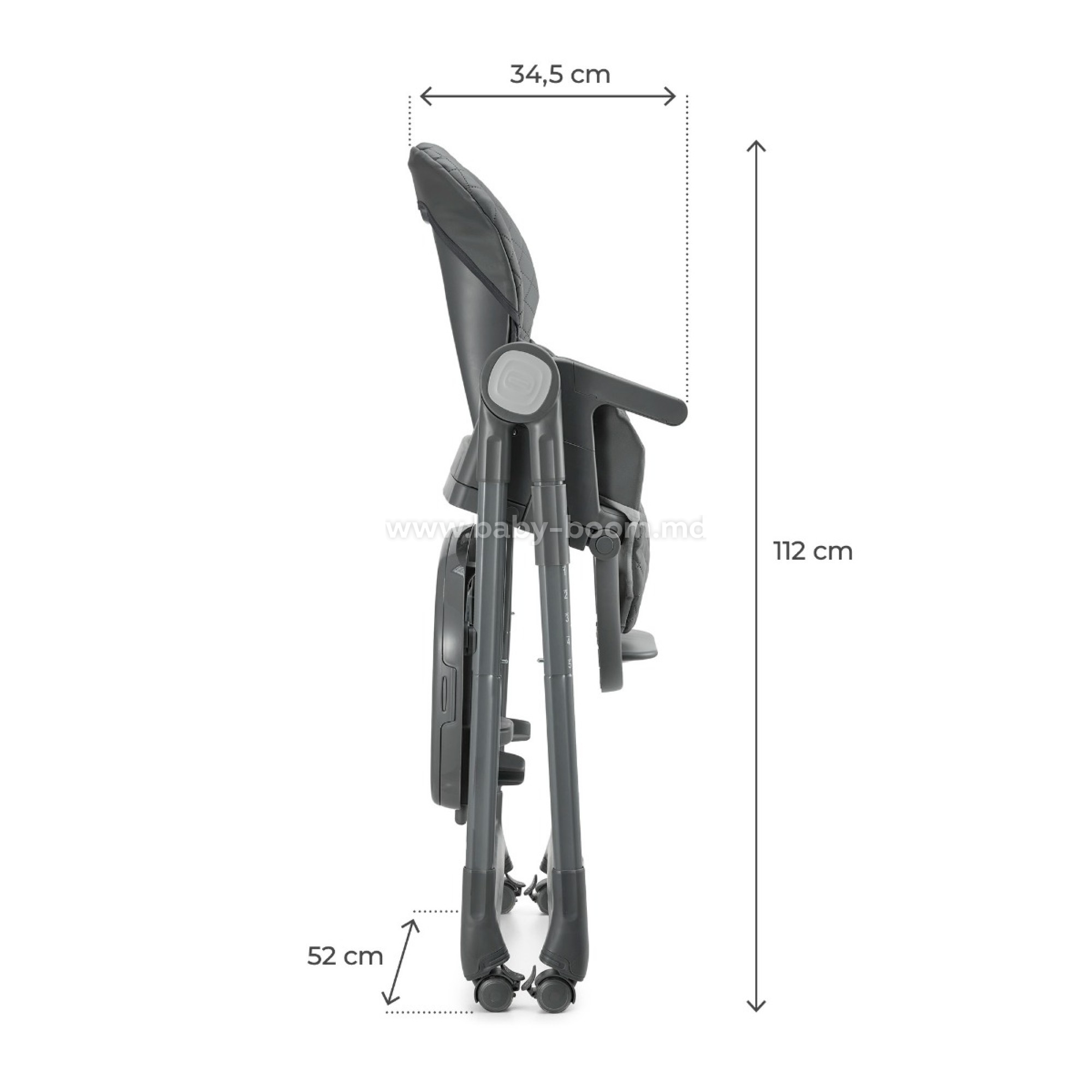 Roțile încorporate cu frâne, un ham de siguranță în 5 puncte și tapițeria moale din PU ușor de curățat asigură confortul și siguranța copilului dumneavoastră. Când este pliat, scaunul înalt este foarte compact, ceea ce îl face ușor de depozitat - ocupă un spațiu minim și se potrivește cu ușurință într-un colț sau într-un dulap.