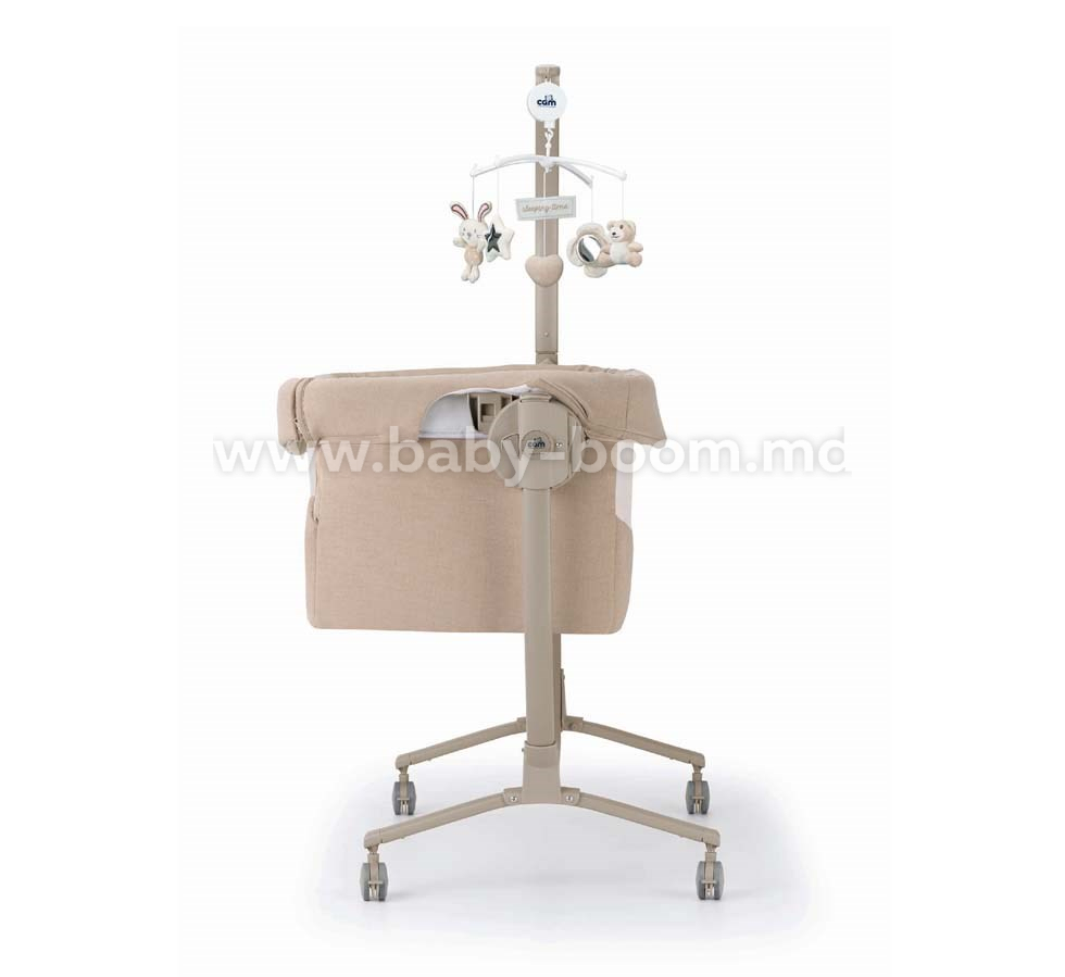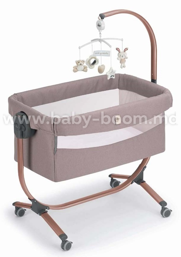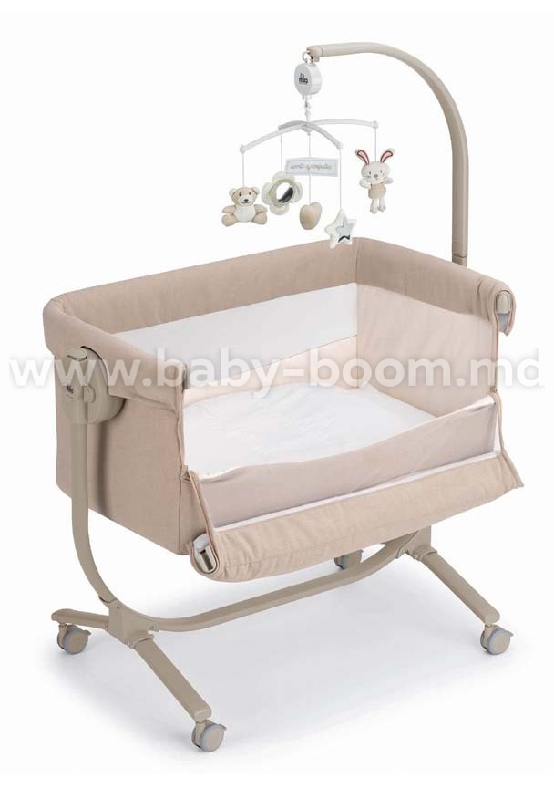 Leaganul poate fi combinat cu orice paturi datorita faptului ca leaganul se poate deplasa de-a lungul axei orizontale pana la 16 cm.Leaganul se deplaseaza usor prin incapere datorita rotilor, care pot fi demontate daca este necesar. Un plus frumos este prezenta in configuratia suportului pentru baldachin sau mobil si o saltea moale. În leagăn, copilul tău va fi confortabil și confortabil, ca în brațe.
