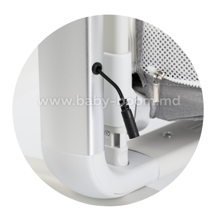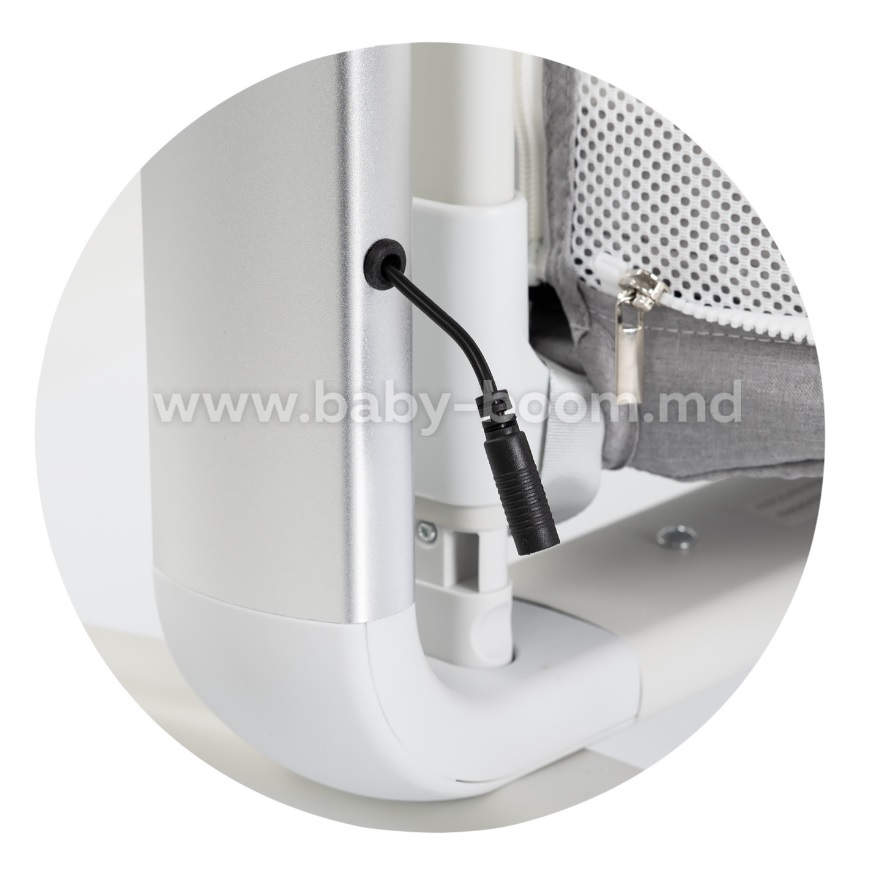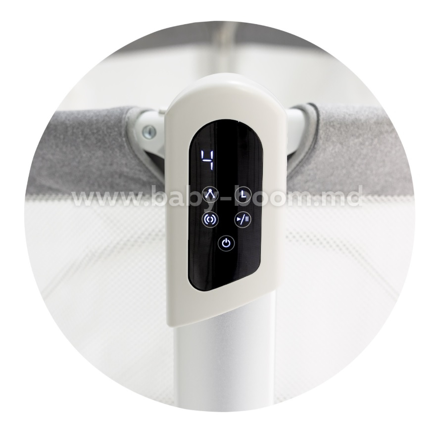 • Legănare ușoară cu inducție inteligentă (senzor de mișcare) – bebelușul adoarme în ritmul natural al îmbrățișării mamei, iar dacă se mișcă, pătuțul se pornește automat.