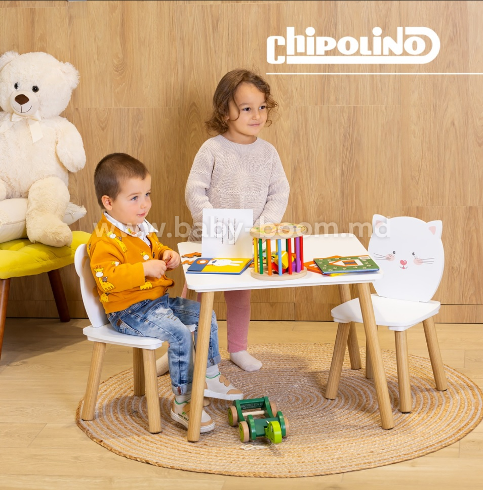 Chipolino DIWH02440323 Masă și două scaune din MDF "Ursuleț și Pisicuță"