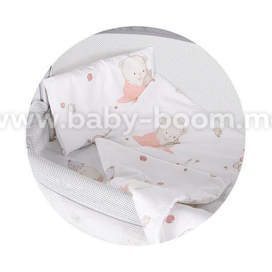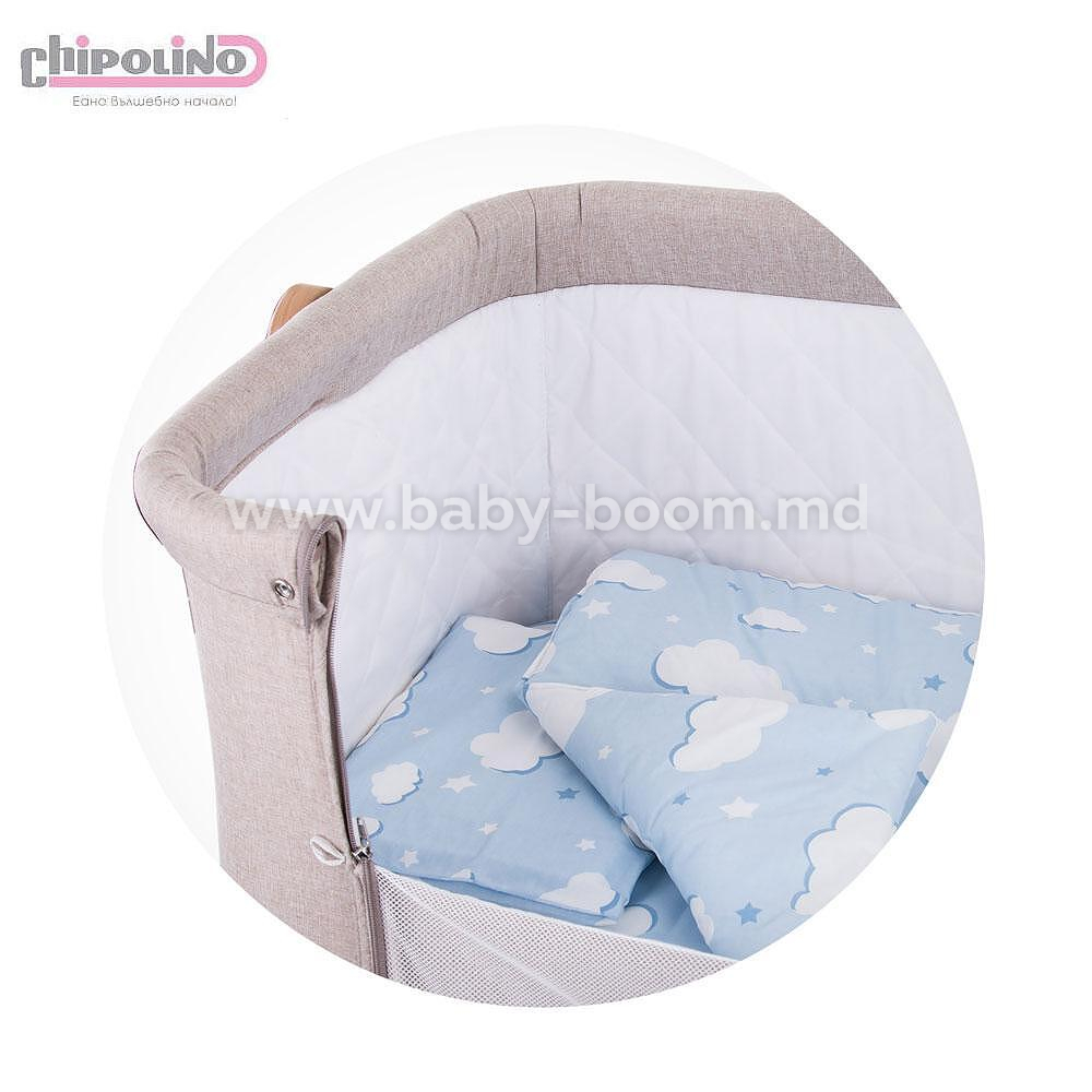 Acest set de lenjerie de pat se potrivește tuturor pătuțurilor Chipolino cu paravan pliabil.