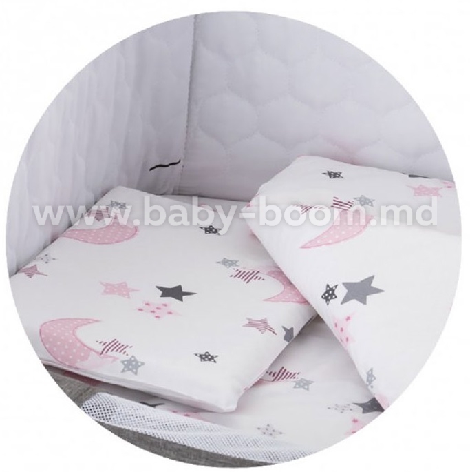 Chipolino Lenjerie pentru leagăn KOSCLOSET05WP "Luna" roz (4 buc.)