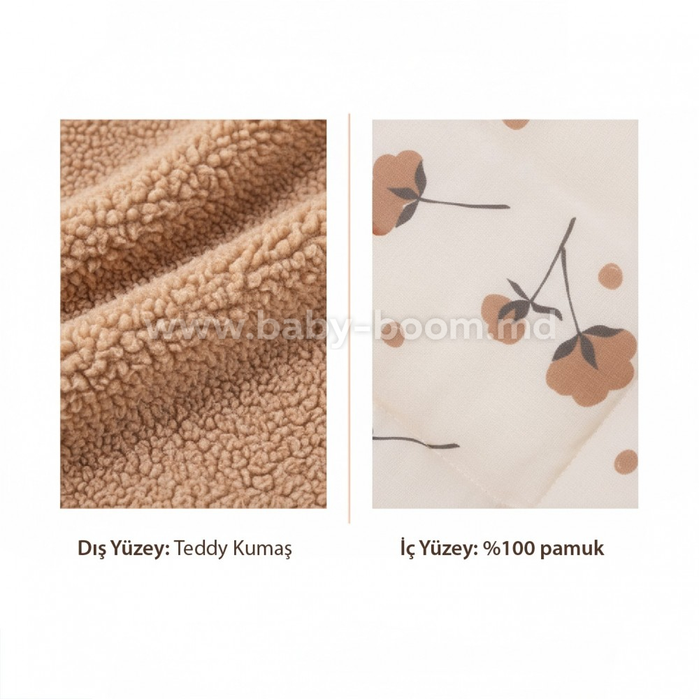 - Partea exterioară este confecționată din pluș pufoas „Teddy”, care te invită la atingere.