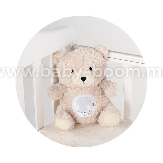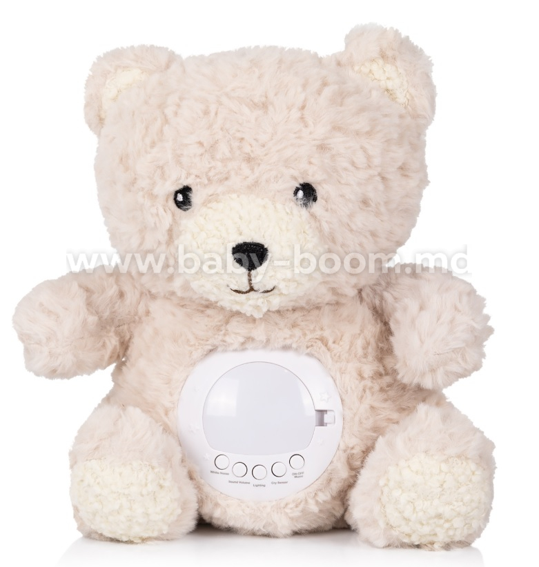 Acest ursuleț de pluș moale și confortabil va deveni cel mai bun companion al copilului dumneavoastră înainte de culcare. Cu o cutie muzicală încorporată și 10 cântece de leagăn blânde, calmează și aduce pace înainte de culcare. Cu trei huse interschimbabile - cer înstelat, lumină de noapte și ocean - ursulețul de pluș creează o atmosferă magică în camera copilului.