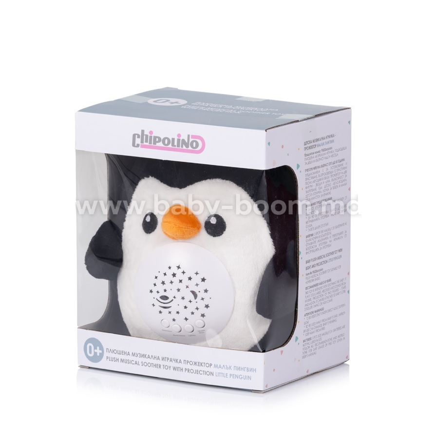Chipolino PIL02512LPEN Jucărie de pluș cu proiector și muzică "Pinguin"