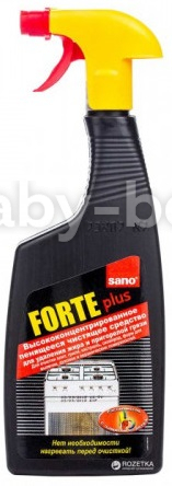 - Detergent Sano Forte indepărteaza grăsimea si arsurile de pe aragaz, gratar, cuptor, plită, oale, tigăi, hotă, ceramică.