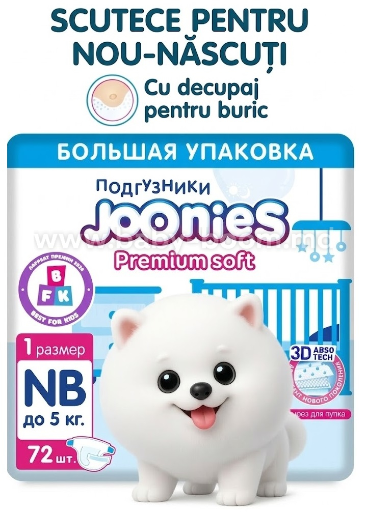 Joonies Premium Soft Scutece NB (0-5 kg.) 72 buc.