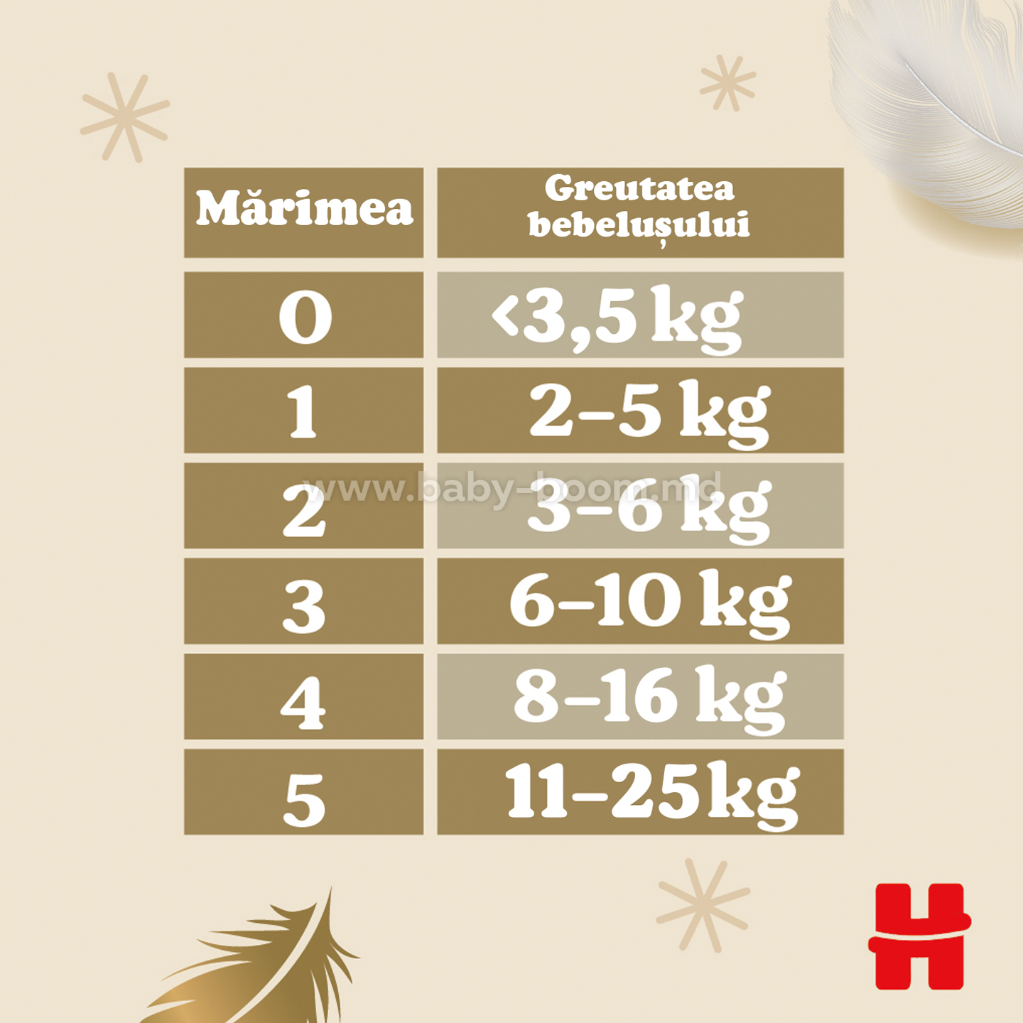 Alegeți mărimea scutecului conform greutății bebelușului indicate pe ambalaj.
