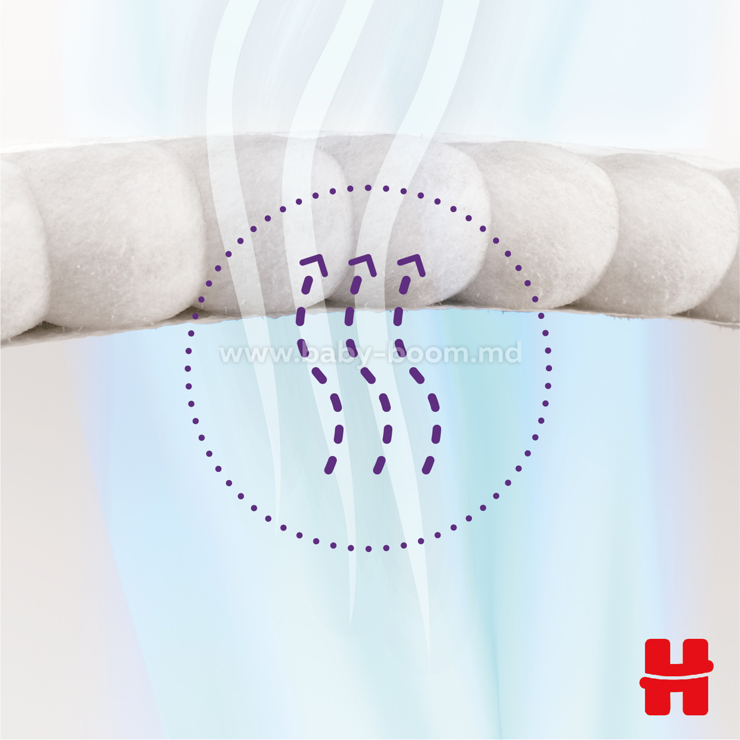 ✔ Zona frontală: pernuțe absorbante moi care absorb lichidul în câteva secunde