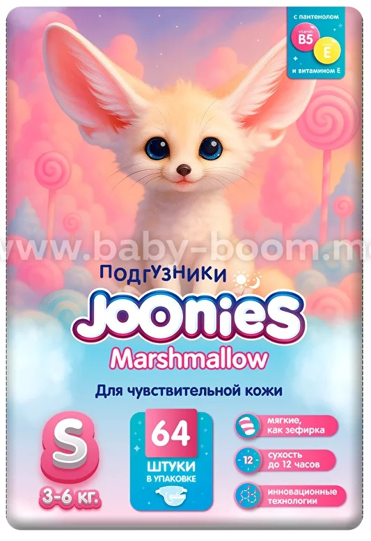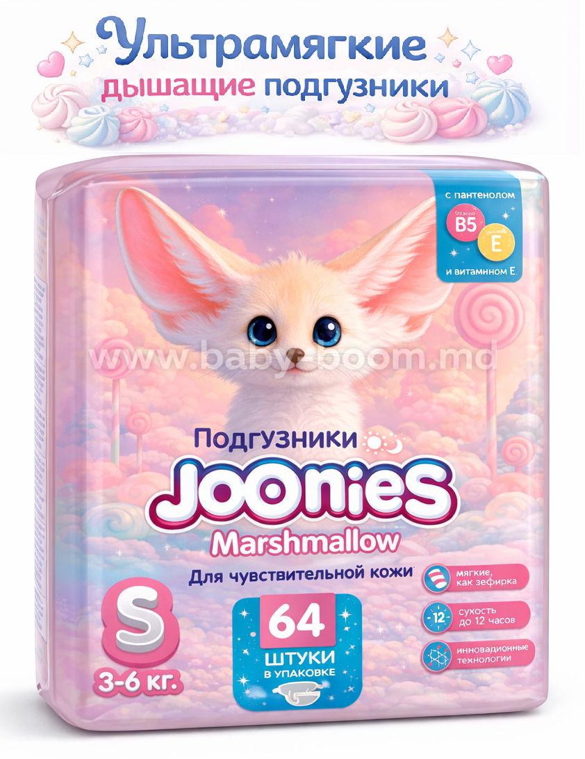Joonies Marshmellow Scutece S (3-6 kg) 64 buc.