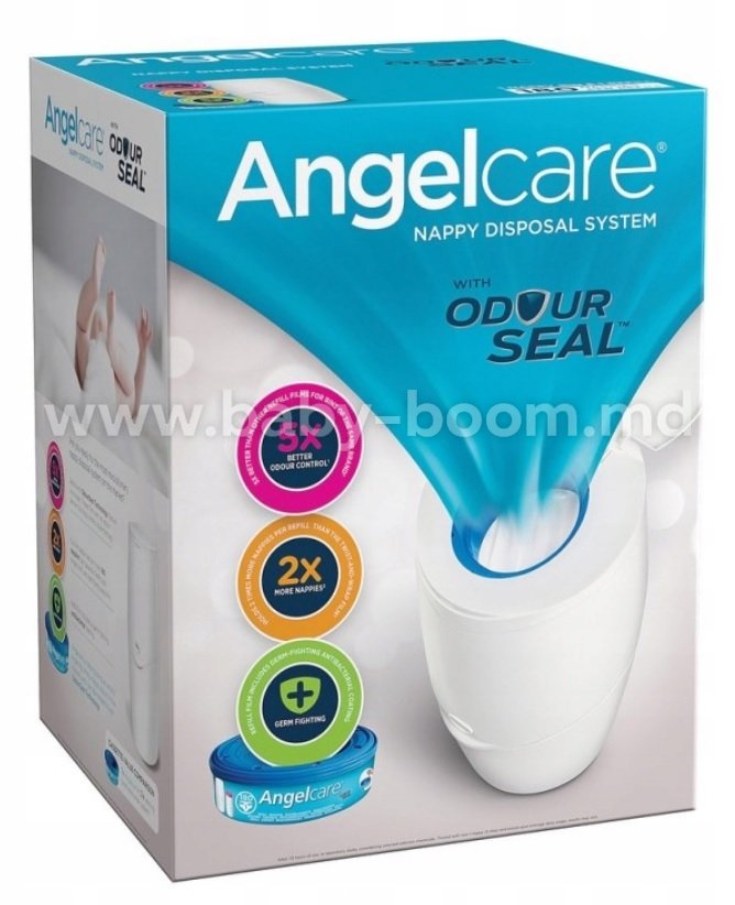 Inserturile de schimb pentru sistemul de eliminare a scutecelor Angelcare sunt fabricate dintr-o folie specială multistrat, fără mirosuri. Fabricate cu tehnologia ODOUR-SEAL™, aceste noi inserții sunt de cel puțin 5 ori mai eficiente* decât cele ale concurenței**. Folia utilizată în inserții este formată din șapte straturi în loc de cinci, oferind o protecție și mai bună împotriva mirosurilor și bacteriilor. Straturile suplimentare de nailon și EVOH sigilează și întăresc folia, în timp ce un strat antibacterian suplimentar previne creșterea bacteriilor.