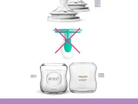 - Designul de tetina fara scurgeri previne scurgerile si pierderile de lapte