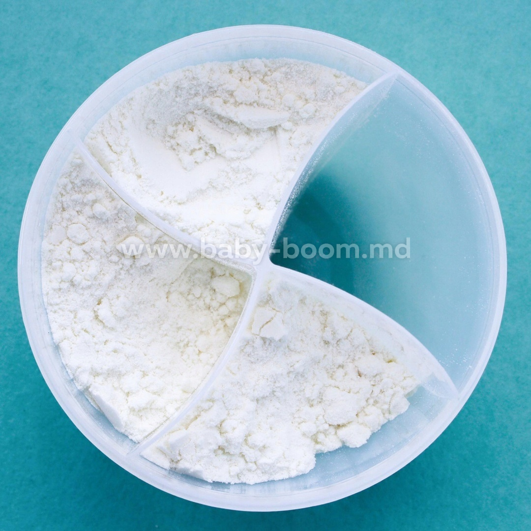 Acest recipient este conceput pentru depozitarea laptelui praf. Vă permite să măsurați cu ușurință laptele praf pentru patru mese (un compartiment conține până la 8 lingurițe dozatoare). Un dozator special din capac vă permite să turnați rapid laptele praf în biberon. Acest recipient este foarte util pentru călătorii și plimbări. Nu uitați să spălați bine recipientul și să-l clătiți cu apă clocotită înainte de prima utilizare și după fiecare utilizare ulterioară.
