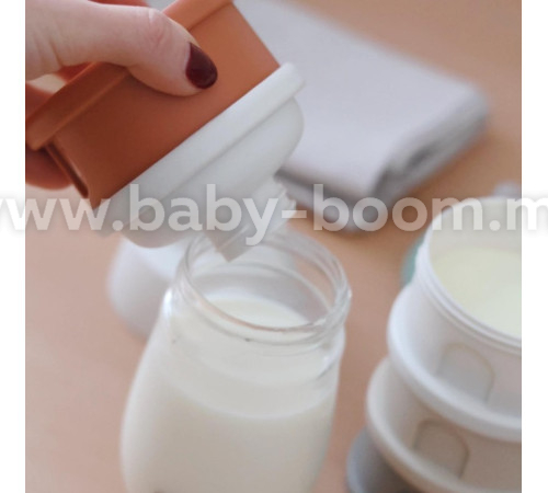 Capacul suplimentar cu o deschidere/pâlnie îngustă facilitează turnarea laptelui în biberon.
