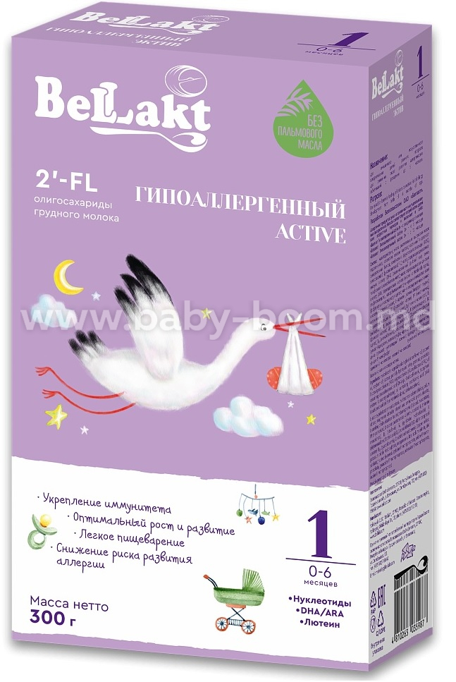 Беллакт Hypoallergenic Active 1 este recomandat pentru hrănirea copiilor sănătoși cu risc de a dezvolta alergii alimentare de la naștere până la 6 luni.