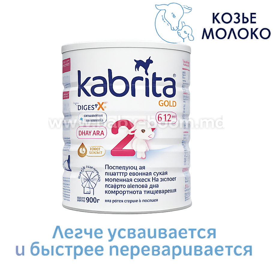 Kabrita 2 GOLD - formula de lapte uscat adaptat din laptele de capră natural olandez, cu adăugarea zerului cel mai valoros. Laptele de capră și produsele bazate pe acesta sunt bine absorbite și tolerate. Aceasta contribuie la o digestie mai confortabilă a copilului. Kabrita amestecă alimentația echilibrată, hrănitoare și atentă a copiilor din primul an de viață.