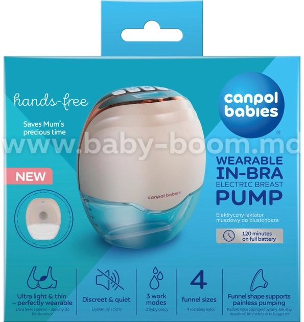 Pompa de sân electrică Hands-Free este discretă și silențioasă - până la 50 de decibeli* în modul cel mai intens, care vă permite să extrageți lapte oriunde vă aflați, chiar și noaptea.