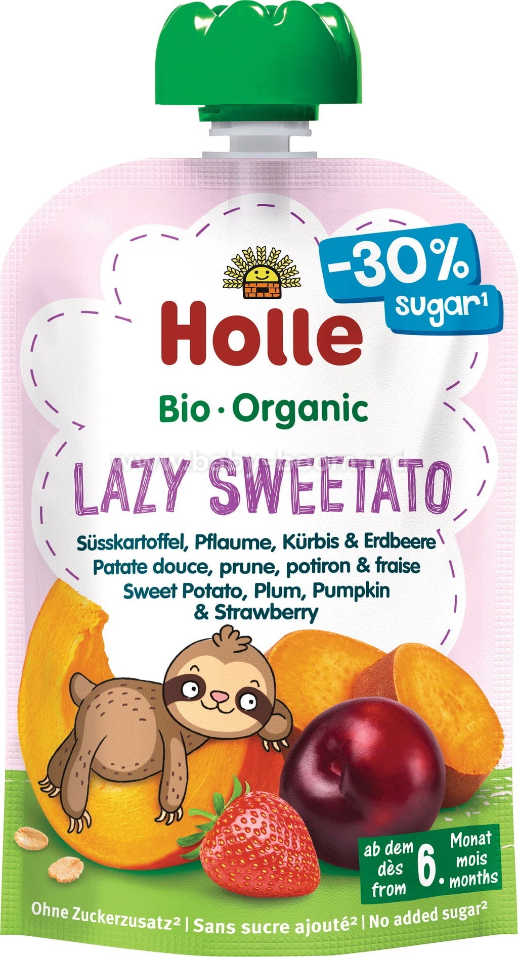 Descoperiți piureul Holle's Lazy Sweetato pentru bebelușii cu vârsta de la 6 luni în sus, care conține cu 30% mai puțin zahăr decât alte piureuri!