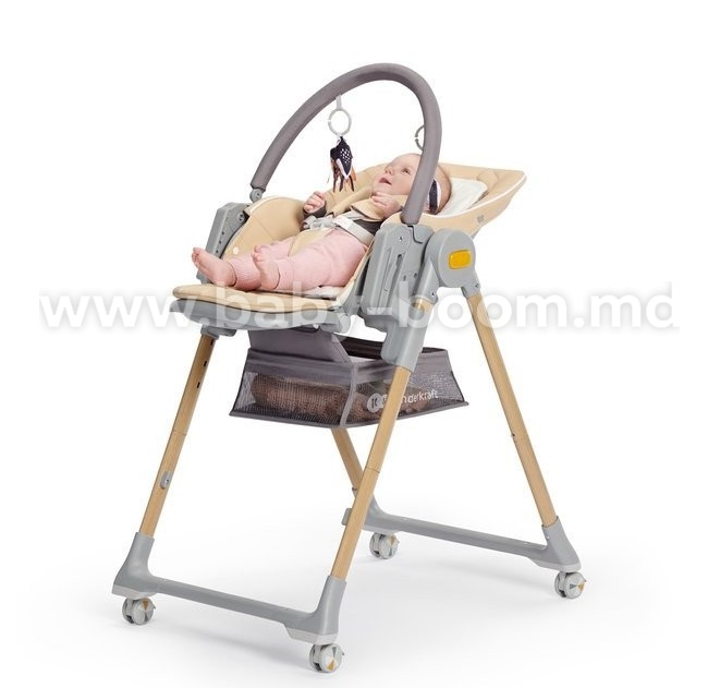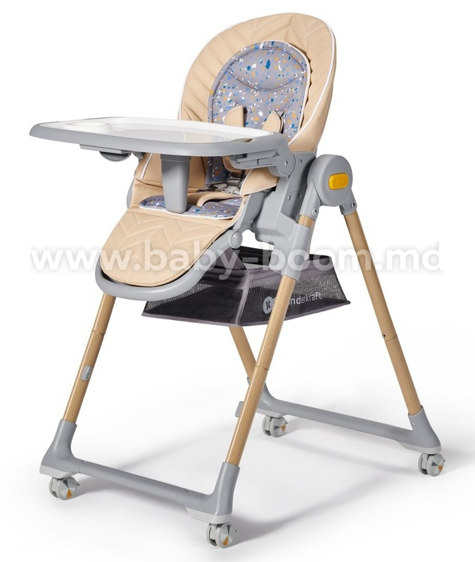 - Scaunul înalt are un suport suplimentar pentru picioare pentru cei mai mici copii. Datorită acestuia, confortul minciunii, al jocului sau al științei alimentației independente va fi și mai mare.