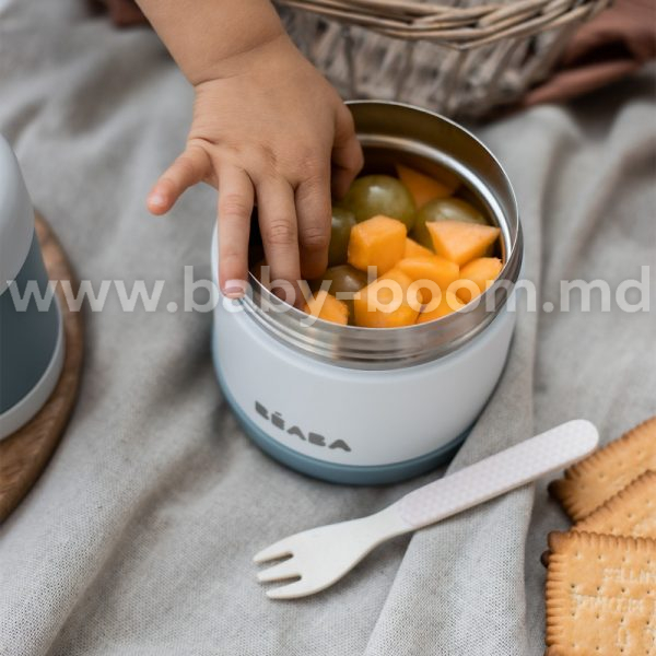 Recipientul izoterm din otel inoxidabil Beaba Thermo-Portion va permite sa transportati mesele bebelusului in deplasare.