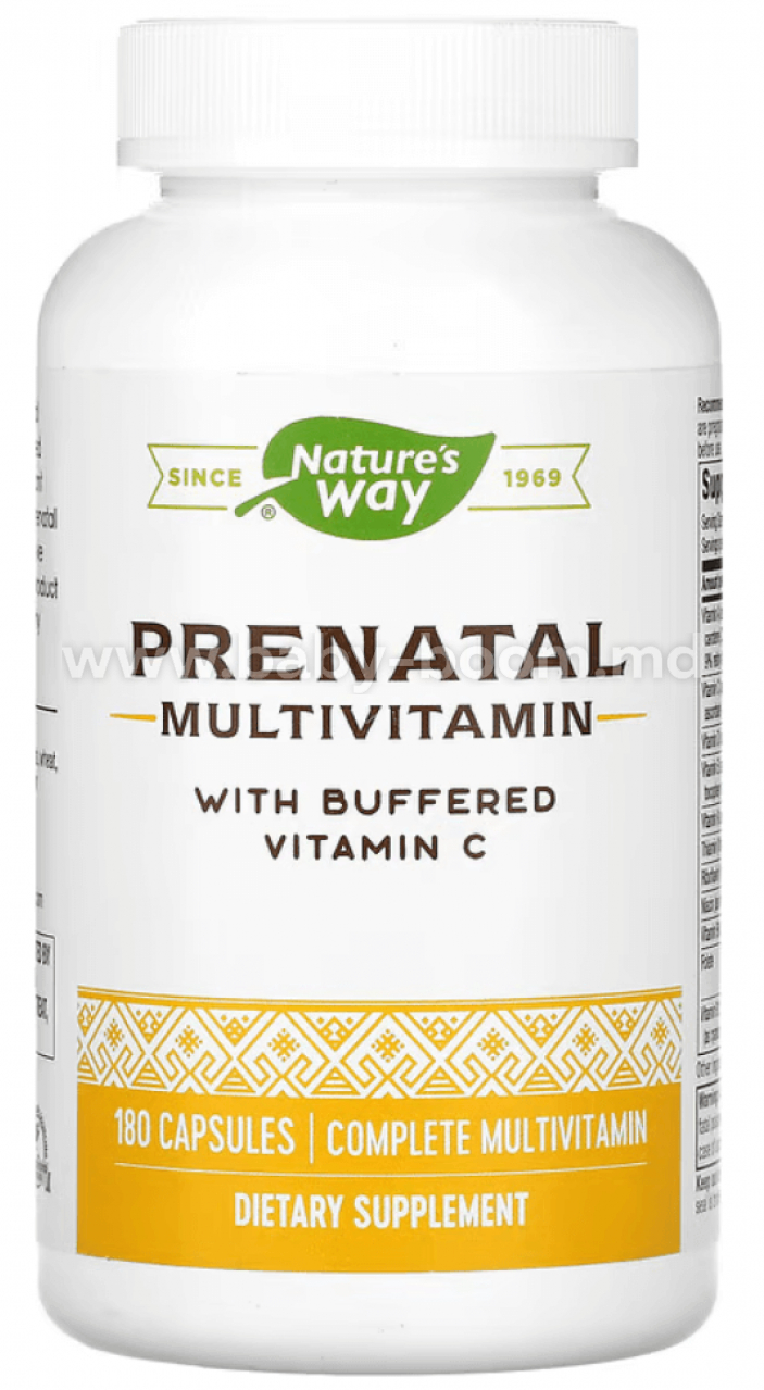 Natures Way Prenatal Multi este un supliment alimentar multivitaminic complet, fără gluten. Această multivitamină prenatală special formulată conține vitamina C tamponată pentru mamele însărcinate și care alăptează. Multivitaminele noastre prenatale sunt supuse unor teste riguroase pentru a ne asigura că oferim produse cu acid folic de cea mai înaltă calitate, pentru a susține dezvoltarea sănătoasă a creierului și a măduvei spinării.