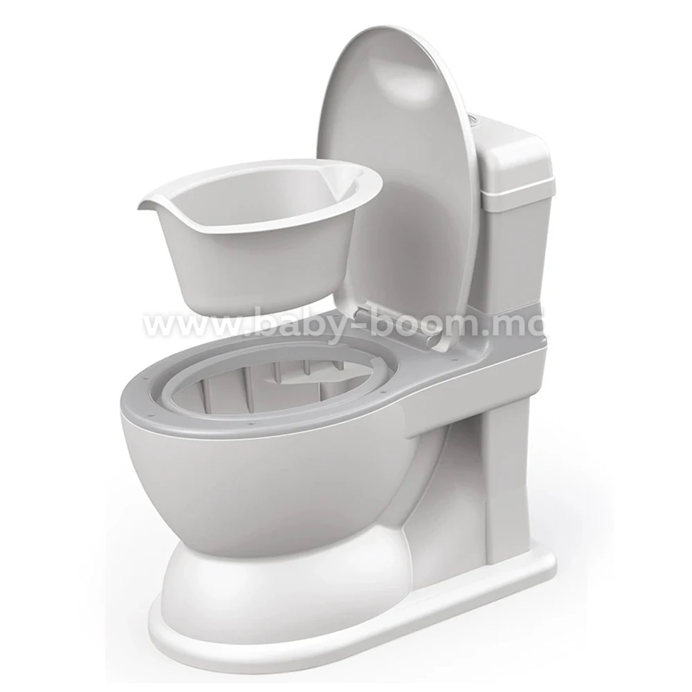 Design și dimensiune: Toaleta de antrenament pentru copii este de culoare albă clasică. Este semnificativ mai joasă decât o toaletă standard, permițând copiilor să se așeze cu ușurință. Înălțimea scaunului: 28 cm