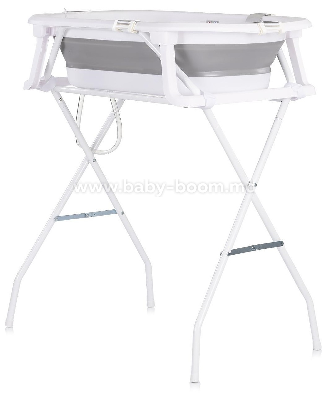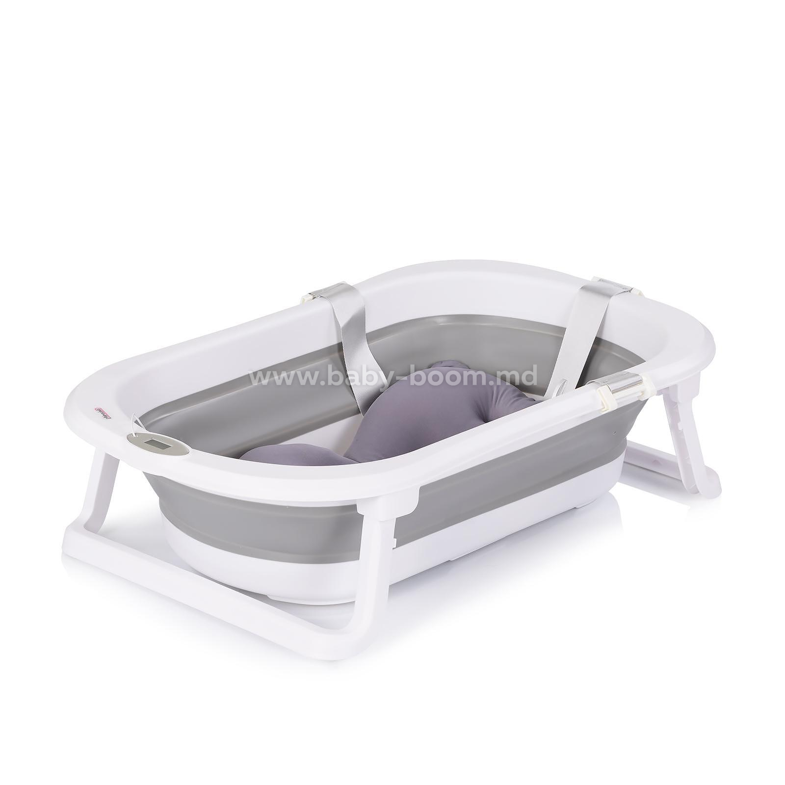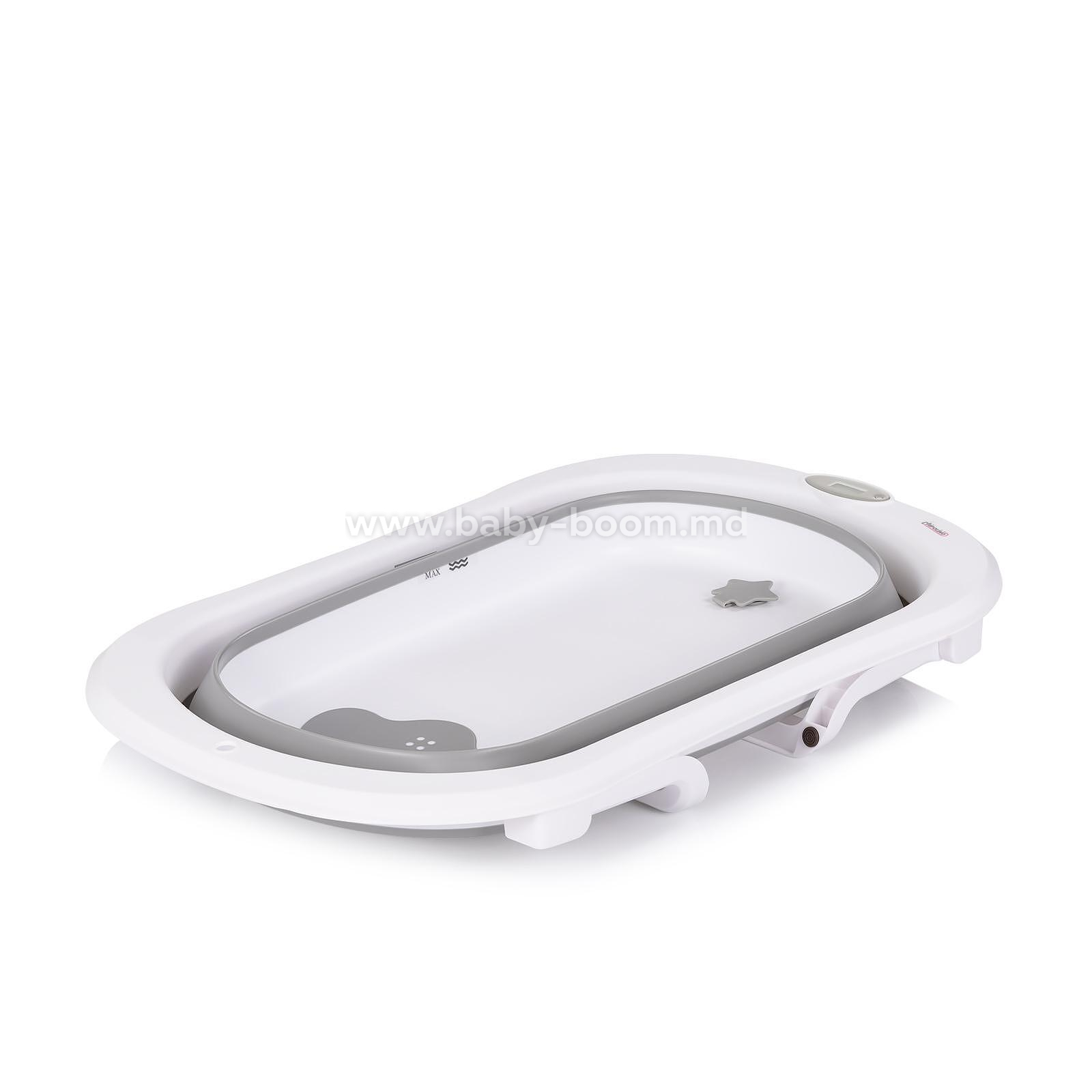 - Suport metalic pliabil – ridică cada la o înălțime confortabilă, protejând spatele părinților.