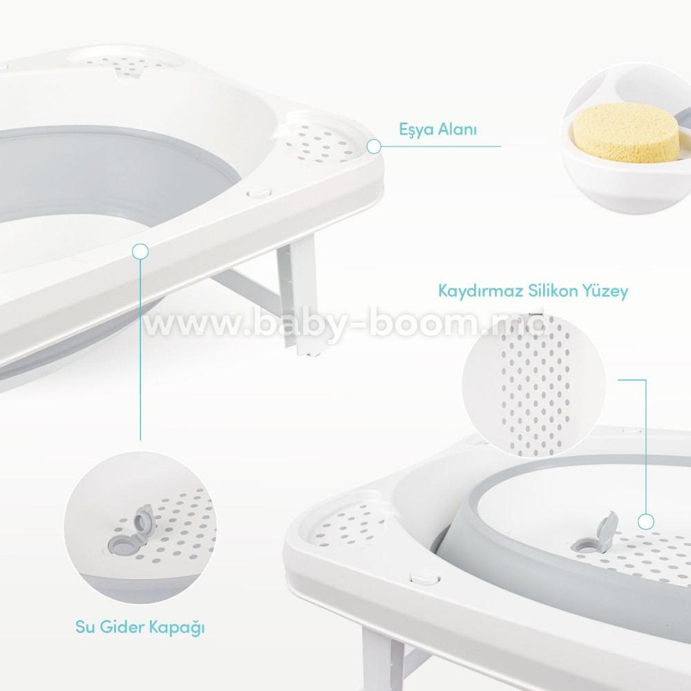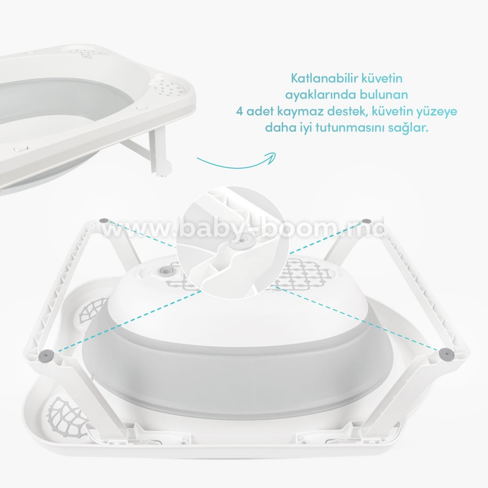 Cada pliabilă, datorită designului său ergonomic, asigură confort complet copilului dumneavoastră în timpul scăldat. Designul lărgit al picioarelor și suportul antiderapant de la baza piciorului asigură o prindere mai sigură a căzii de baie la suprafață.