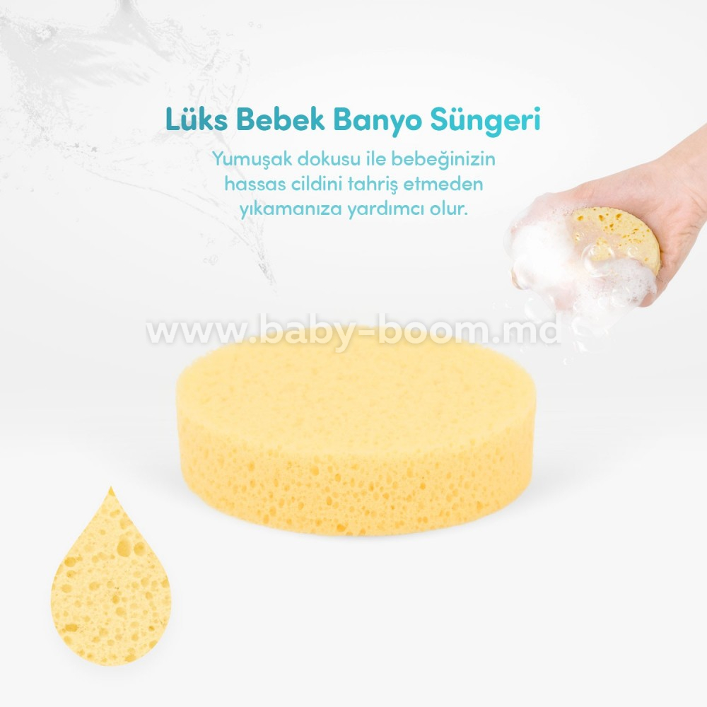 Acest burete de baie luxos pentru bebeluș ajută la curățarea pielii sensibile a bebelușului fără a provoca iritații datorită texturii sale moi.