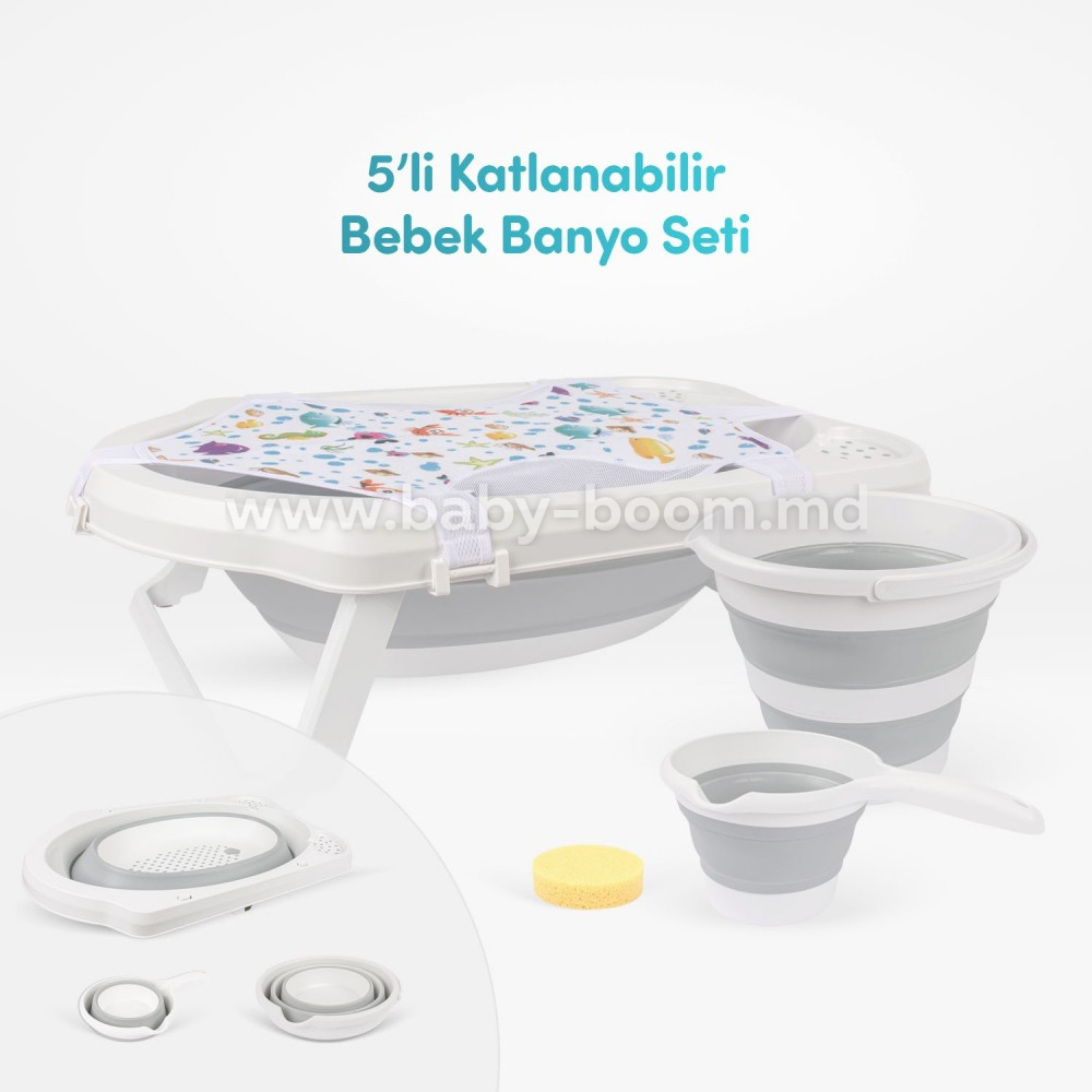 Setul de baie pliabil din 5 piese este foarte ușor de utilizat datorită designului său pliabil, făcând experiența de îmbăiere a bebelușului dumneavoastră confortabilă și sigură. Datorită designului său pliabil, nu va ocupa mult spațiu în baie.