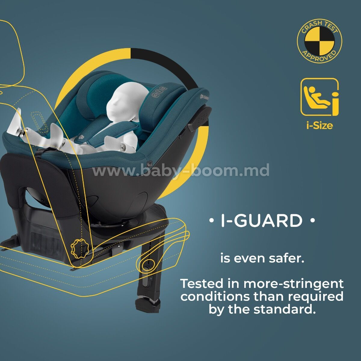 Faceți cunoștință cu I-GUARD PRO, scaunul auto compatibil R129 i-Size pentru copii de la naștere până la aproximativ 4 ani (40-105 cm). Pentru a îndeplini cele mai înalte standarde de siguranță, a fost testat la 64 km/h, în timp ce standardul cere ca cicatricile să fie testate pentru impact frontal la 50 km/h. Rezultatele pozitive au confirmat că I-GUARD PRO reduce forța unui impact frontal asupra capului și toracelui cu până la 20%!