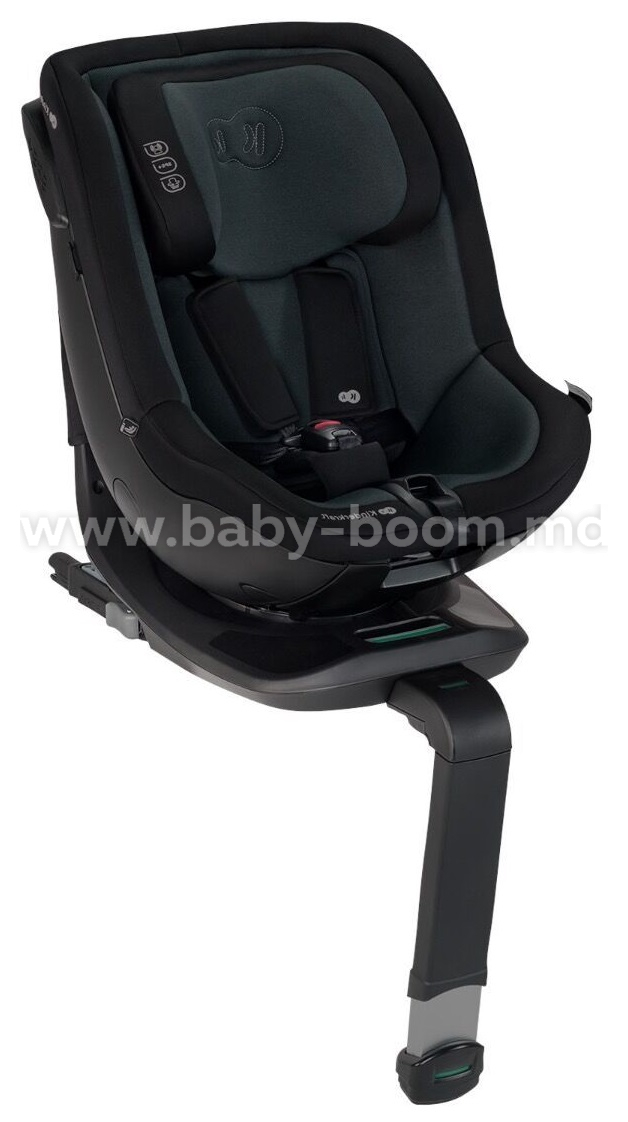- Rotire 360°C. Sistemul faciliteaza asezarea copilului in scaunul auto si prindere cu curele interne. Pur și simplu apăsați butonul pentru a repoziționa și roti scaunul auto spre tine.