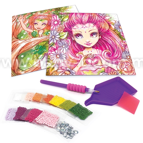 Creați 2 capodopere orbitoare! Utilizați un aplicator special pentru a aplica microgeme pe șabloanele adezive. Urmați numerele asociate cu fiecare culoare. Rezultatul final este uimitor!