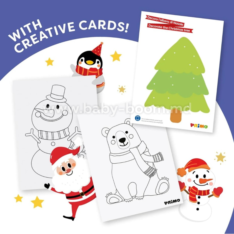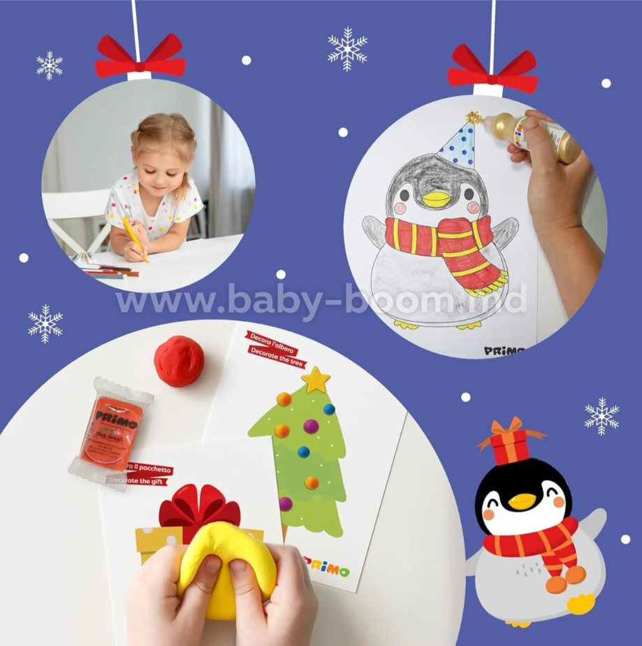 Transformă așteptarea Crăciunului într-o aventură artistică cu calendarul de Advent Primo, conceput special pentru cei mici. În spatele fiecărei dintre cele 24 de uși se află o surpriză creativă, ideală pentru joacă, modelare și pictură.