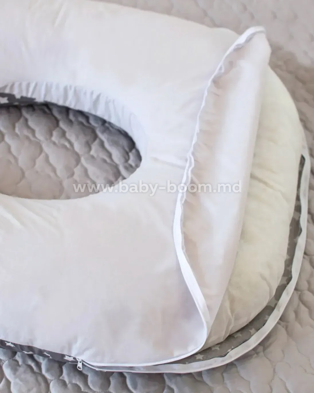 - Confort hipoalergenic: Interiorul este umplut cu o fibră siliconizată moale. Aceasta își păstrează perfect forma, nu reține mirosurile și este complet sigură pentru tine și bebelușul tău.
