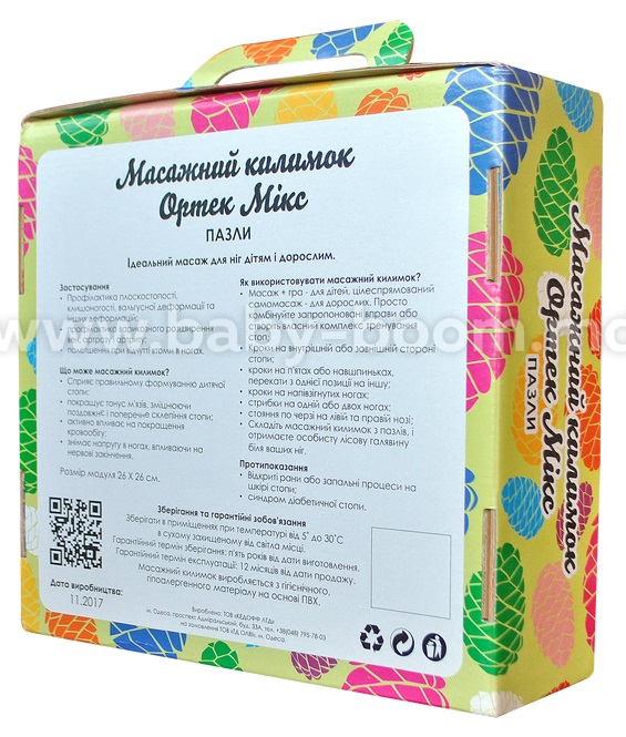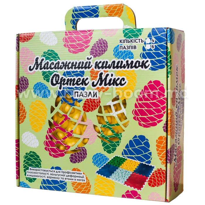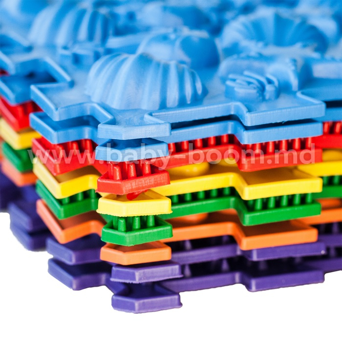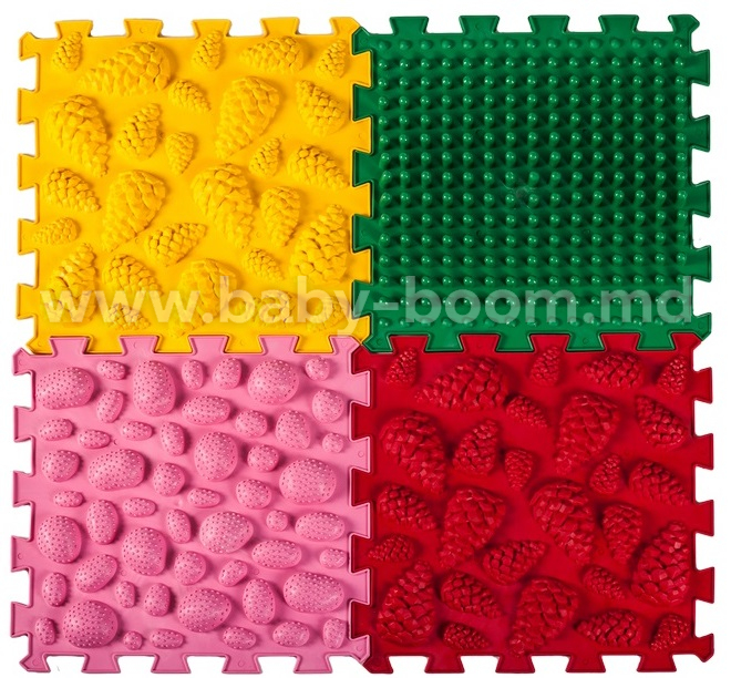 Covorașul de masaj Ortek este format din 4 puzzle-uri și este realizat din material igienic, hipoalergenic, pe bază de PVC.
