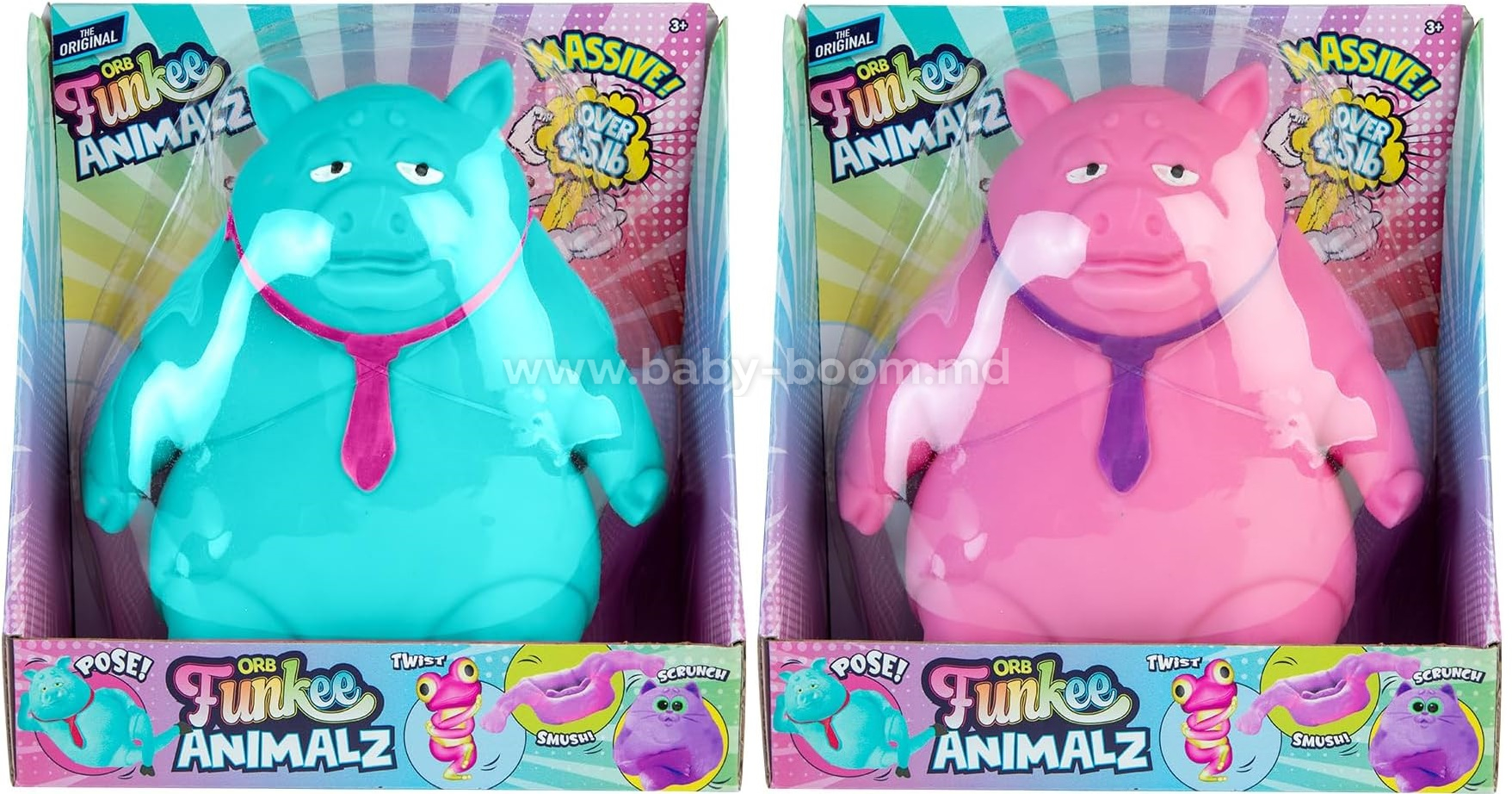 Întinde, strânge și strivește! Creează expresii amuzante cu Funkee Pig Jumbo pentru a-ți distra prietenii! Strânge-l și readu-l la forma sa inițială. Răsucește-l, remodelează-l și pune-l în poziție - posibilitățile sunt nelimitate! Funkee Pig Jumbo face parte dintr-una dintre cele mai tari tendințe virale în materie de jucării, cu peste 6 miliarde de vizualizări pe TikTok și Instagram. Pozează-te și distribuie-l astăzi!