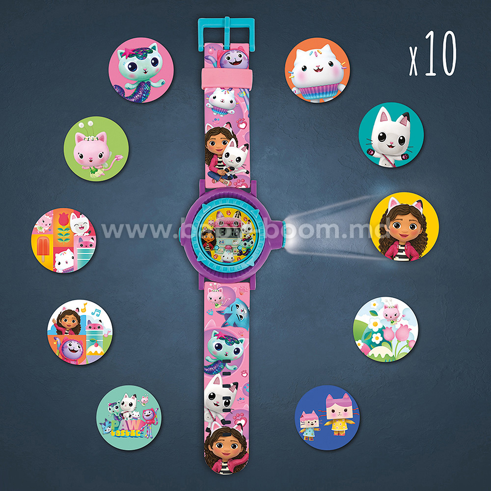 Ceasul proiector digital Gabby pentru copii va transforma numărătoarea inversă a orelor într-un basm captivant! Cu un proiector încorporat care afișează 10 imagini diferite cu unicorni, fiecare moment va fi plin de imaginație și un zâmbet. Mecanismul digital facilitează citirea orei de către copii, iar designul jucăuș este special conceput pentru mânuțele mici.