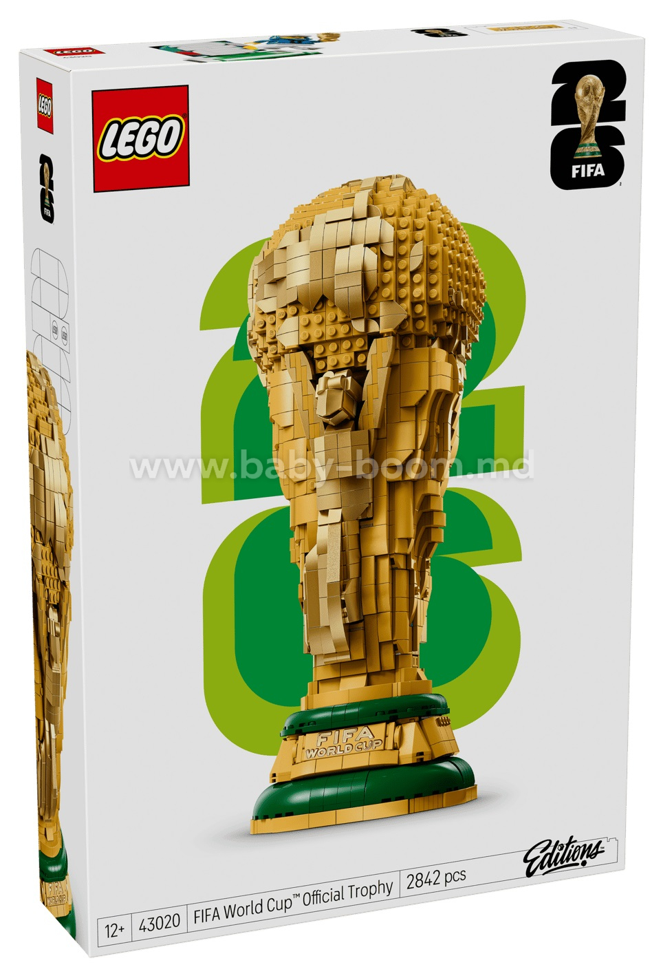 Devino un campion creativ cu setul de construcție LEGO® Editions Trofeul oficial al Cupei Mondiale FIFA (43020), conceput pentru fanii fotbalului de 12 ani și mai mari. Starurile din sport de 12 ani și mai mari se vor distra copios construind din cărămizi LEGO această replică a Trofeului Cupei Mondiale și descoperindu-i detaliile autentice. Modelul include 2 figurine oameni într-o mișcare de rotire care susțin Pământul, emblematicul glob și o placă în partea de jos cu numele câștigătorilor Cupei Mondiale din trecut. Globul superior al trofeului LEGO se deschide pentru a dezvălui o minifigurină cu logoul FIFA World Cup 2026™ care ține în mâini un minitrofeu și un fundal pe care se vede logoul Cupei Mondiale 2026. Mica scenă poate fi păstrată în interiorul trofeului sau scoasă pentru a fi expusă lângă acesta. Odată finalizat, trofeul este o spectaculoasă piesă de decor și este o idee grozavă de cadou de zi de naștere sau oricând pentru băieți, fete și fani ai sportului de toate vârstele. Setul este disponibil și digital în aplicația LEGO Builder, unde copiii își pot urmări progresul construcției și își pot roti modelele. Setul conține 2.842 de piese.