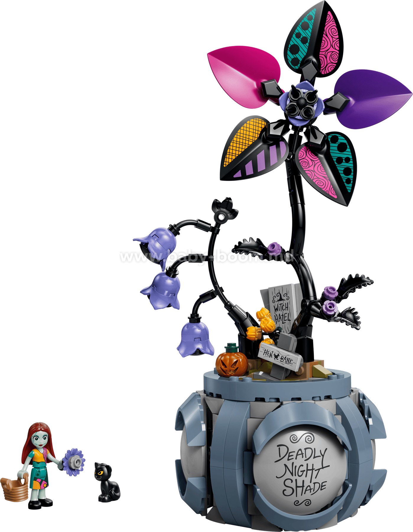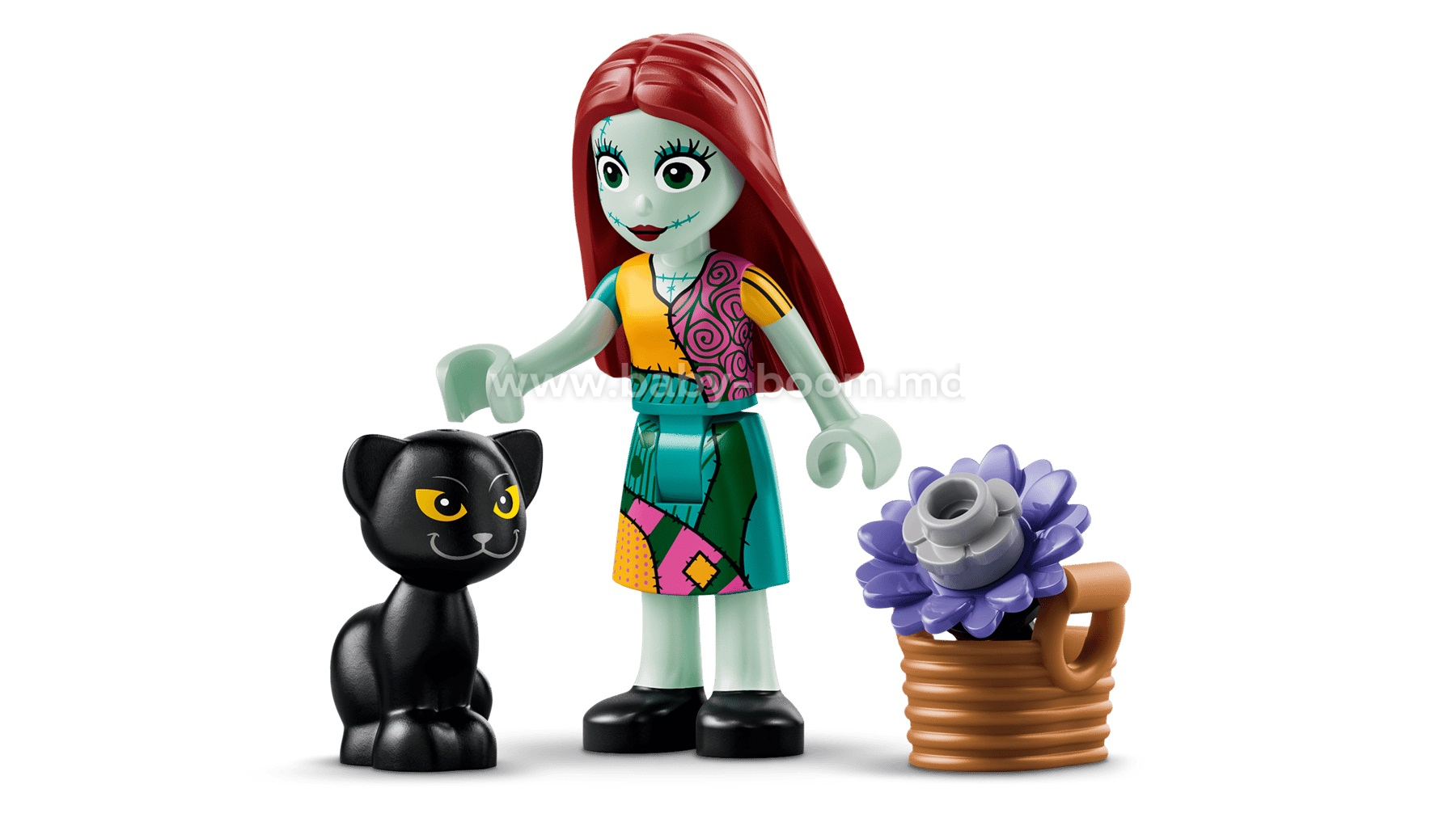 - PERSONAJE ȘI CARACTERISTICI – Alături de personajele LEGO® ǀ Disney Sally și o pisicuță neagră, setul de construcție include și o floare cu 3 (din 5) petale care se potrivesc cu ținuta lui Sally și 3 decorațiuni cu elemente grafice.