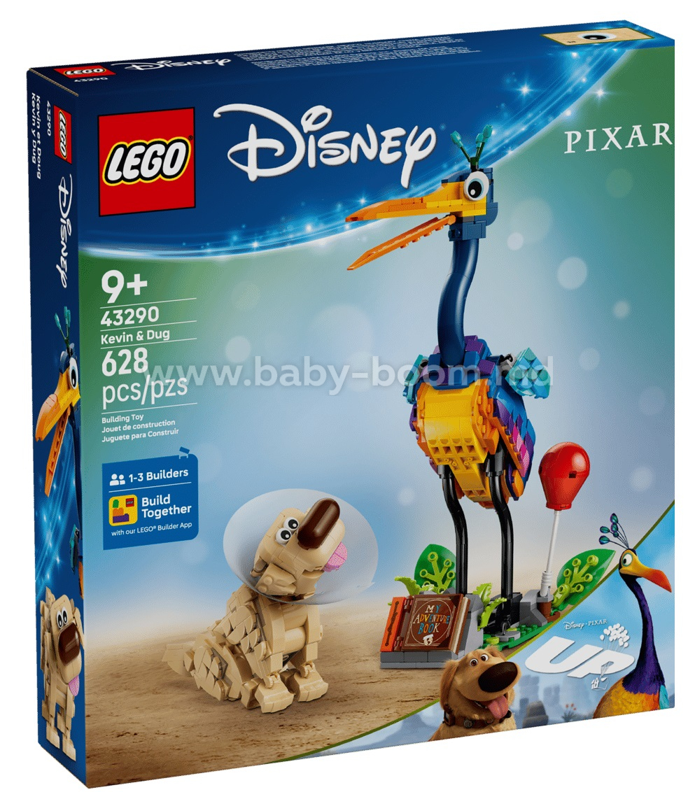Aventura îi așteaptă pe copiii cu vârsta de la 9 ani în sus în acest set de construcție de jucărie LEGO® ǀ Disney și Pixar Kevin și Dug (43290). Acest set de construcție inspirat din filmul Deasupra tuturor prezintă, pentru prima dată într-o jucărie LEGO ǀ Disney și Pixar din cărămizi, personajele pasărea Kevin și câinele Dug. Există, de asemenea, un suport cu frunze mobile și spațiu pentru cartea Jurnalul meu de aventuri, un balon roșu, gulerul de protecție, zgarda specială a lui Dug și multe altele. Personajele pot inspira o joacă plină de imaginație sau pot fi etalate creativ pe un raft sau un birou. Această jucărie de construcție pentru copii este o idee grozavă de cadou Disney pentru familii, fete și băieți pentru o zi de naștere sau o sărbătoare și se poate completa cu alte seturi LEGO și jucării de construcție LEGO ǀ Disney (vândute separat). Satisfă pasiunea unui copil pentru joaca inspirată din filme fantastice cu o construcție care oferă posibilități distractive de joacă. În plus, poți face echipă cu prietenii și familia cu modul Construim împreună din aplicația LEGO Builder, unde toată lumea se distrează construind o parte a setului folosind propriile dispozitive. Setul conține 628 de piese.