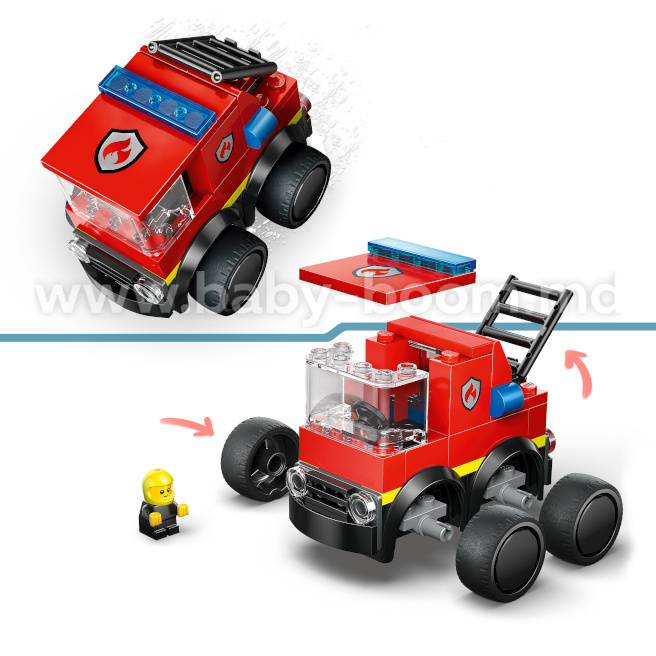 Cu acest set de joc LEGO City Rides – Mașina de pompieri, copiii se pot bucura de o construcție intuitivă cu ajutorul aplicației LEGO Builder, mărind și rotind imaginea cu ajutorul instrucțiunilor 3D, precum și salvând și urmărind progresul – totul din aplicație.
