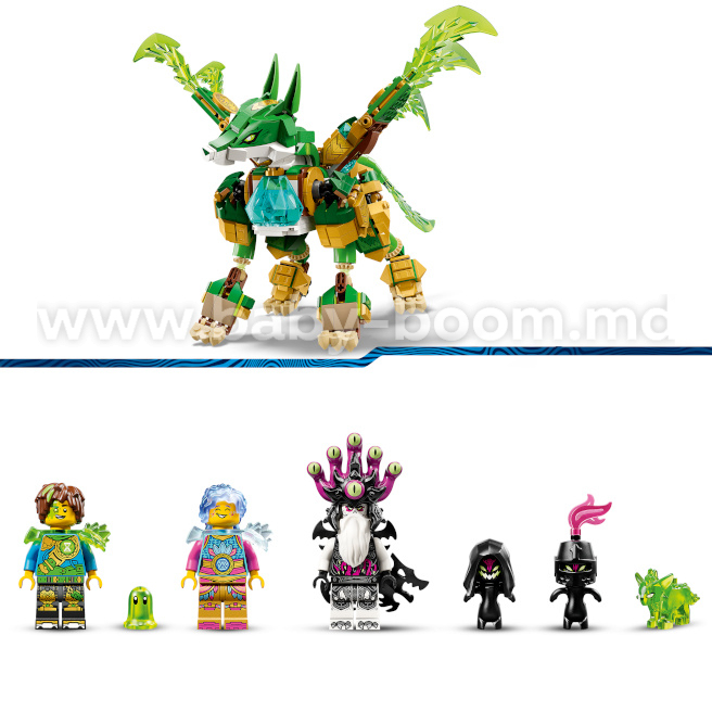 Minifigurinele Mateo, Izzy și Împăratul Coșmarurilor stimulează imaginația și încurajează jocurile de rol. Fiecare dintre ele este echipată cu o sabie individuală de culoare corespunzătoare caracterului personajului. Copiii se vor bucura, de asemenea, să descopere 2 figurine Grimspoon, o figurină Z-Blob și un ou de diamant din care iese jucăria „Comoara verde”.