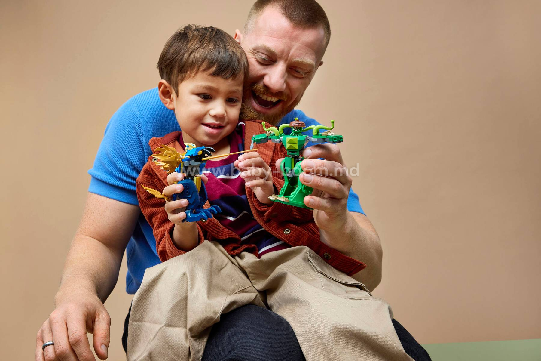 - ROBOT CARE ÎNVAȚĂ COPIII SĂ CONSTRUIASCĂ – Băieții și fetele de 4 ani și mai mari învață să construiască, apoi interpretează lupte ninja cu setul LEGO® NINJAGO® Robotul dragon al lui Jay în luptă (71853)