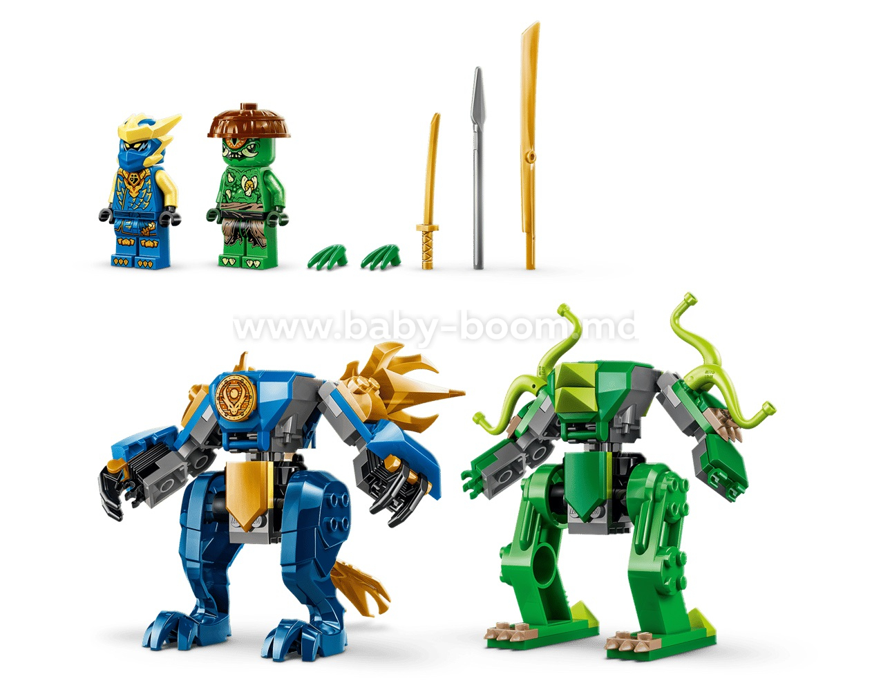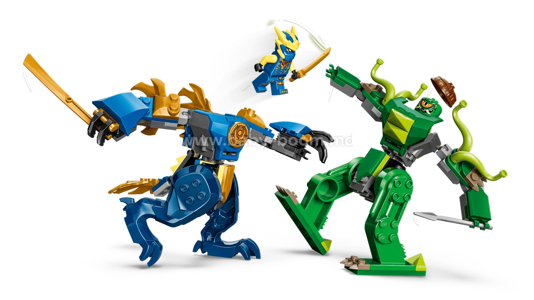 - FIGURINE ARTICULATE – Ambii roboți au uncockpit care se deschide pentru o minifigurină și coada, picioarele, brațele și corpul articulate pentru ca micii fani ninja să le poată așeza în diferite posturi de luptă