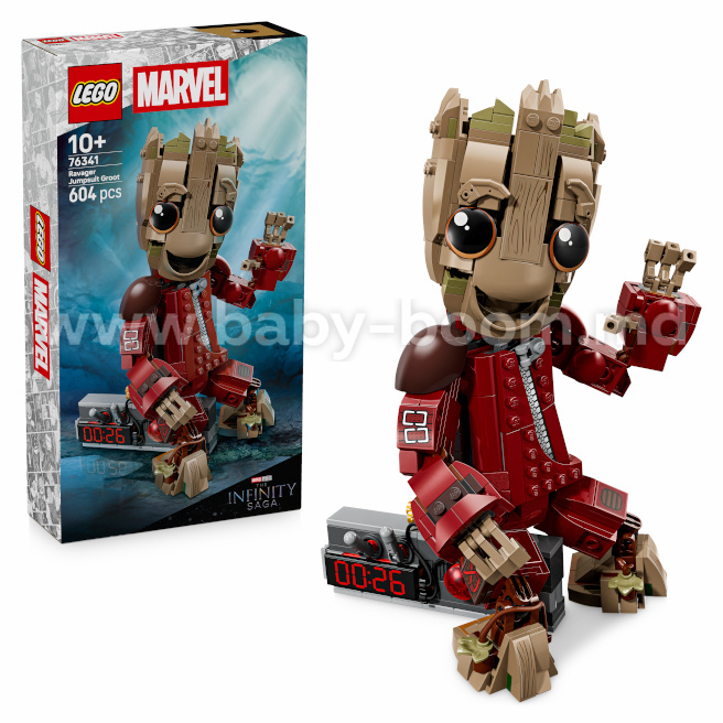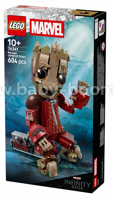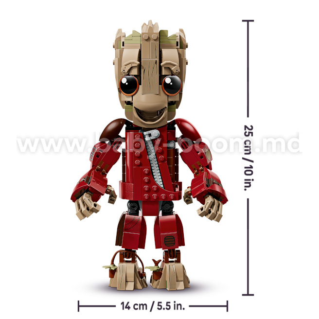 Această jucărie de colecție LEGO ǀ Marvel îl prezintă pe Groot în costumul Distrugătorului din filmul Marvel Studios „Garda Galactică. Partea a 2-a”. Figurina de asamblat este prevăzută cu un detonator cu 2 butoane și 2 manete mobile, care fac referire la scena cult din film. Figurina are o mobilitate ridicată: umeri, mâini, degete, șolduri, picioare și gât complet articulate, precum și sprâncene reglabile pentru o varietate de expresii faciale.