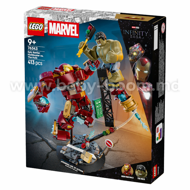 Redeați acțiunea filmului Marvel Studios „Răzbunătorii: Era Ultron” cu setul de construcție LEGO® ǀ Marvel Epic Battle: Hulkbuster vs. The Hulk (76343) pentru băieți și fete cu vârsta de peste 9 ani. Acest set de construcție uimitor, care include minifigurinele Iron Man și Hulk, precum și celebra armură Hulkbuster, oferă copiilor posibilități nelimitate pentru jocuri de rol creative și expoziții creative.